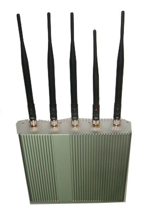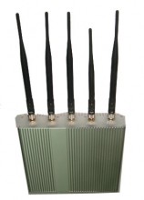 To efficiently block all the mobile phone signals, this 5 antenna cell phone jammer remote control for 3G, GSM, CDMA, DCS is absolutely one of the most efficient solutions. The jammer is equipped with five omni-directional high gain antenna and works at 12.5W output power to provide strong jamming effect within a range up to 40m, depending on the signal strength given in the area.