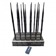 JM081112 is another type of 12 antennas desktop jammer. Compared to the former 12-band Model JM1701102, this model cover 5.8G WiFi, Meanwhile,it can block 2G,3G,4G LTE Wimax cell phone signals,wifi signal,low frequencies like UHF,VHF signals as well as Lojack signal.What's more, it is designed with higher output power, which total up to 70W. In addition, 5 built-in cooling fans make it non-stop working.