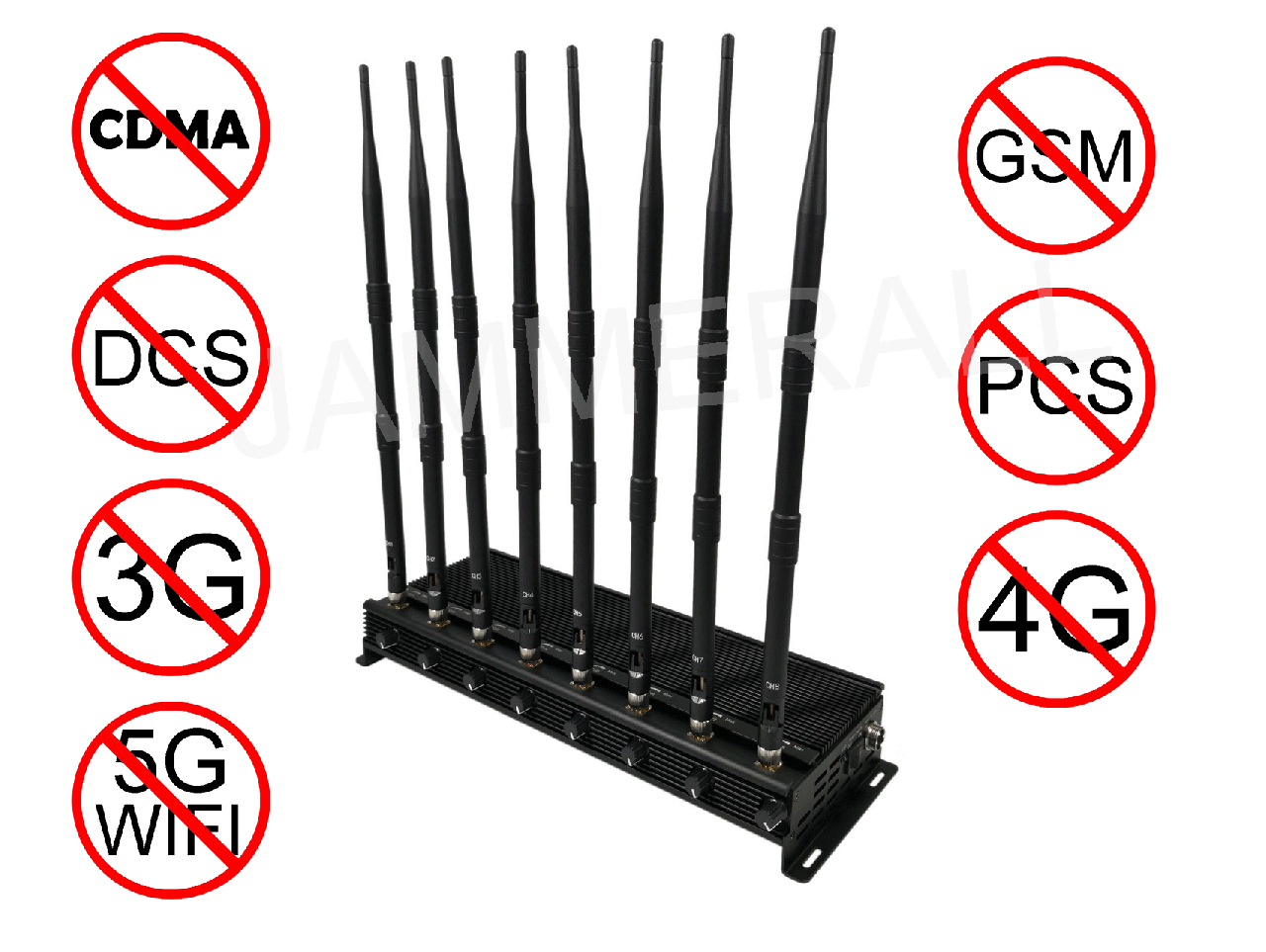 The Latest Mobile phone Signal Jammer 8 Antennas Adjustable Cellphone 2G/3G/4G + All WiFi 2.4G/5.2G/5.8G Blocker, is adjustable and built-in 3pcs cooling fan to support non-stop working.