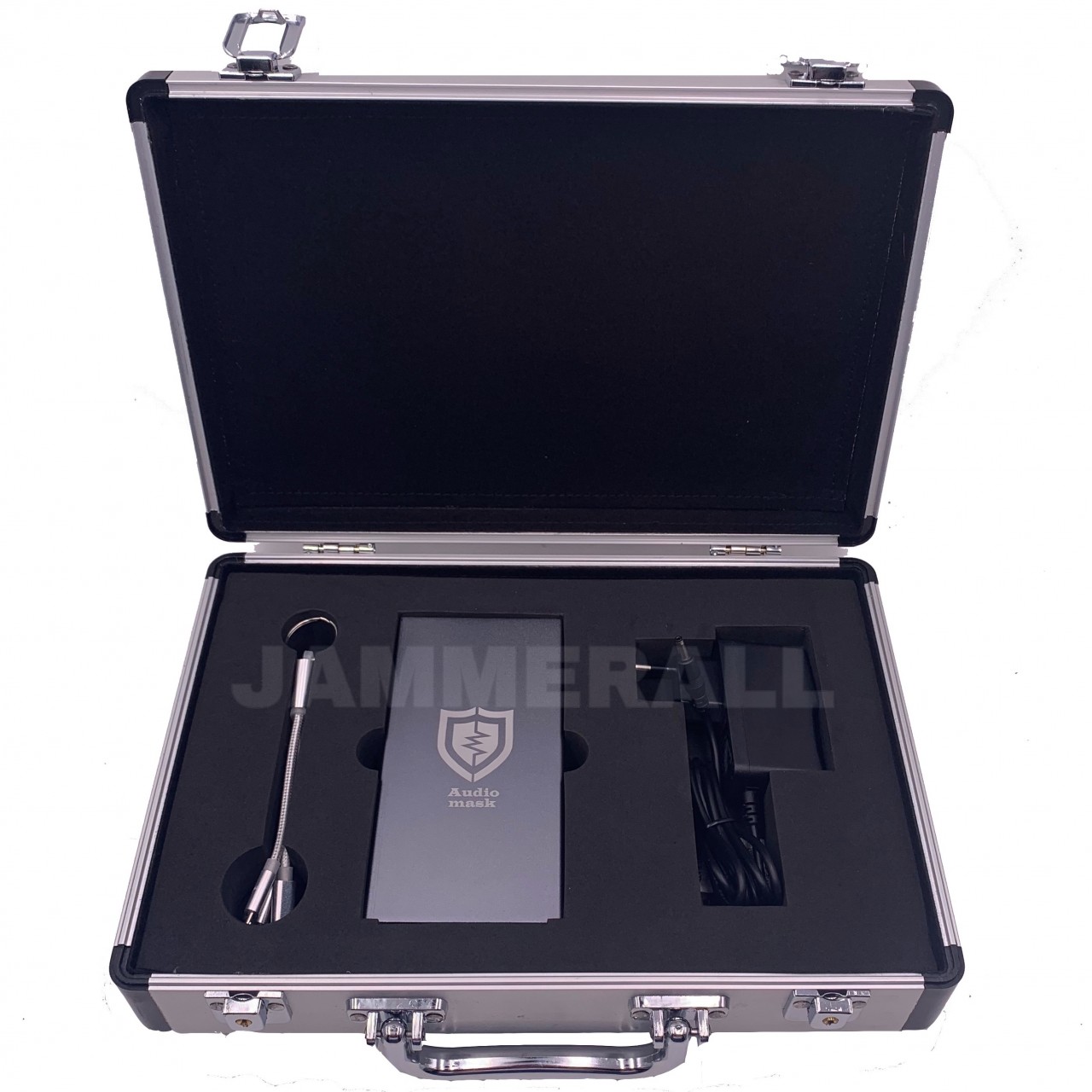 The device is designed to protect conversation areas from eavesdropping. Device blocks wireless microphones, tape recorders, hard-wired microphones and most of professional digital voice recorders including recorders installed in mobile phones (smart phones). Ultrasonic inaudible noise signal, as well as acoustic speech-like noise signal, are used in jamming the eavesdropping devices.