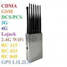 The latest all-in-one design portable wireless signal Jammer,12 bands jamming all types of Android phones, Tablets, Smart Phones, iPhones, Win phones etc. that use 2G, 3G, 4G, and CDMA 450Mhz,Block LOJACK GPS, Wi-Fi 5G,Walkie-Talkie UHF/VHF and RF signals like 315, 433, 868 is popular in 2020 and in years to come.