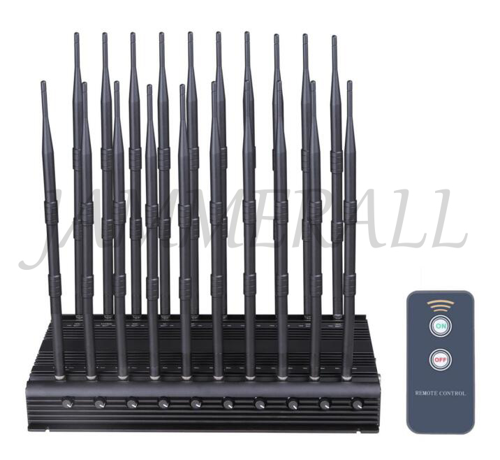 This 20 antennas all-in-one desktop cell phone jammer is the latest design in 2019. As the world first all-in-one 5G cellphone signal jammer with 3.5G, 3.7G, 5G WIFI and Remote control, which can also block GSM, 3G, 4G, VHF, UHF, Wi-Fi, GPS, L1, L2, L5, LOJACK, 5.2G, 5.8G, 3.5G, 3.7G, RF signals like 315, 433, 868, this cellphone jammer can meet your target of most general type of affected frequencies. High power with large cover range, up to 60 meters. Good cooling system with 5 cooling fans inside. It great for school classroom avoid exam cheat and oil/gas station keep in secure.