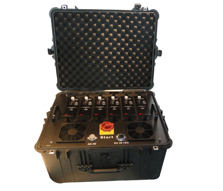 The Portable Multi Band High Power VHF UHF Jammer is specially customized to accommodate a fully integrated broad band jamming system which provides the ultimate solution for Military and Police convoys or VIP protection. The 6 modules are controlled separately and they also can work simultaneously.