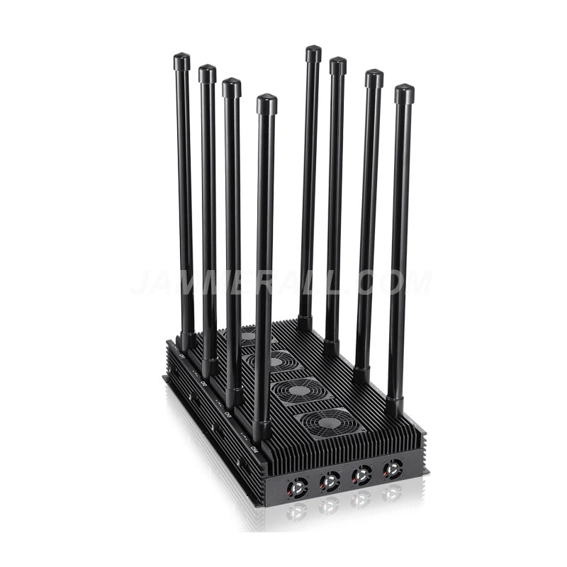 This 210W 8 antennas desktop cell phone jammer is the latest medium power design. As the world first high power desktop cellphone signal jammer each channel output power up to 25W, which can block GSM, CDMA, DCS/PCS, 3G, 4G, Wi-Fi, GPS at the time. This cellphone jammer can meet your target of most general type of Cell phone frequencies. Higher power with large cover range, up to 150 meters. Good cooling system with 11 cooling fans inside. There have 4 Temperature control fans on the host,the fans not working immediately while the jammer started. The temperature control fans auto start running after the host surface temperature raise to 50℃ to ensure the jammer working steadily. It great for school classroom avoid exam cheat and oil/gas station keep in secure. The each band output power can be adjustable according to your request.
